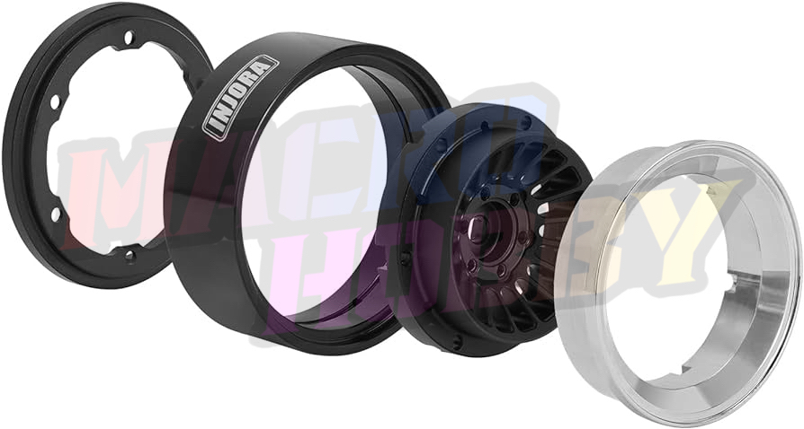 Description Specifications: Material: Aluminum Outer Diameter: 33.5mm (1.32in) Width: 16.5mm (0.65in) Wheel Hub: 7mm (0.28in) Each Weight: 25g/pcs (0.88oz) Package List: 4 * INJORA 1.3" Wheels See less Features & details With a larger 1.3" diameter, beadlock wheels provide your vehicle with an aggressive stance, enhancing both performance and visual appeal. Available in 5 colors, distinctive finishes offering customizable aesthetics to match your personal style. The larger wheel size not only enhances the vehicle's appearance but also contributes to improved performance. Weighing only 25g per piece, maintain a lightweight profile, ensuring they won't compromise your RC crawler's agility and maneuverability. CNC machined from durable aluminum, 1.3 wheels ensure precision and durability for your TRX4M SCX24 RC crawler.