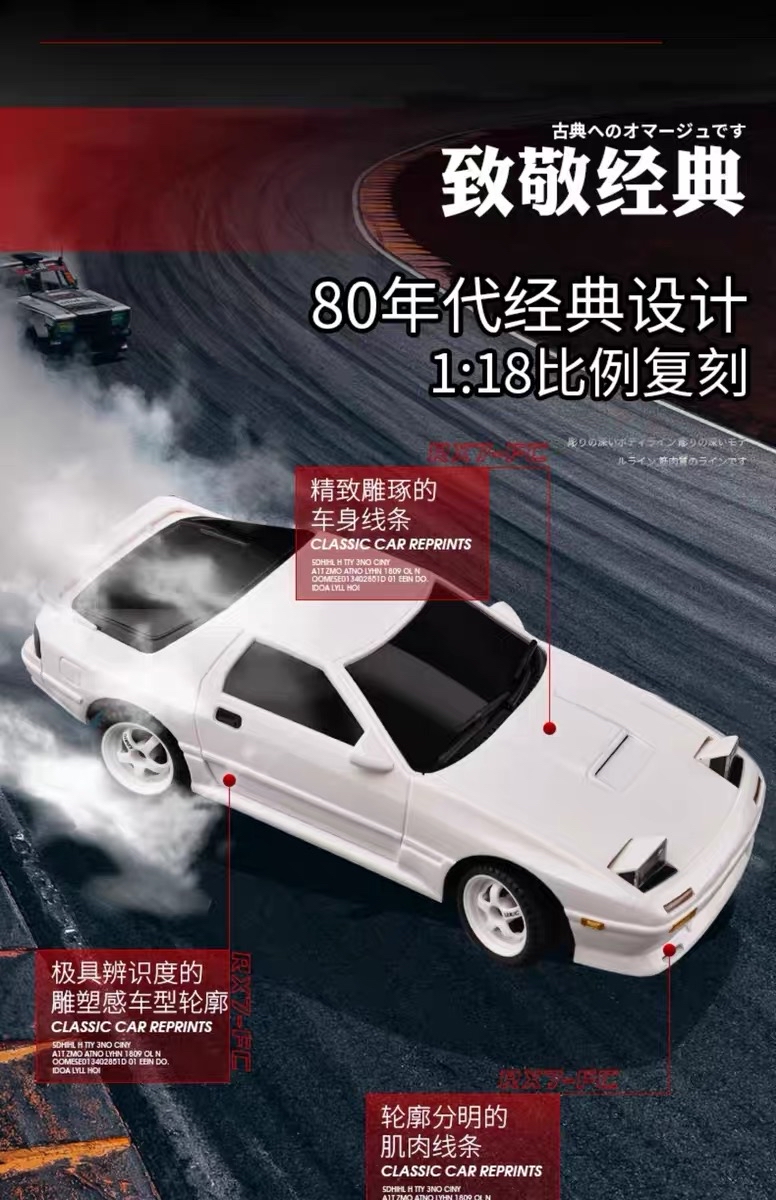 LDR/C 1:18 RC Drift Car RTR with Drift Tire & Gyro FC RX7 Silver #0110805