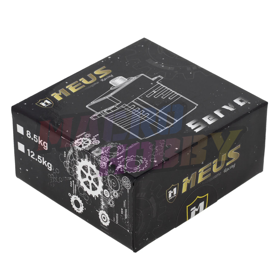 MEUS Racing Metal Servo Arm Brushless High Torque Micro Servo Shifting Servo Supports 8.4V/12.5KG 8.4V/8.5KG for 1/24 SCX24 1/18 TRX4M Models. Key Features 1. Suitable for steering servo of SCX24 and TRX4M, and also compatible with shifting servo of 1/24 and 1/18 models. 2. Brushless motor provides high-speed response and high torque. 3. Supports voltage range of 6-8.4V, providing 8-12.5KG torque. 4. High-precision metal gears with high sensitivity, good stability, low noise, better accuracy, and longer service life. 5. 8.5KG ME-X8 servo and 12.5KG ME-X12 servo are not waterproof and water-resistant. Specifications: Servo Arm Material: Metal Product Number: ME-X8 Operating Voltage: 4.8~8.4VDC Max. Torque-6.0V: ≥ 6 kg.cm Max. Torque-7.4V: ≥ 7.5 kg.cm Max. Torque-8.4V: ≥8.5 kg.cm No Load Speed-6.0V: ≦0.07sec/60° No Load Speed-7.4V: ≦0.06sec/60° No Load Speed-8.4V: ≦0.058sec/60° Operating Travel Angle: 180°+10°(500~2500 us) Motor Type: Coreless motor Horn Gear Spline: 25T/∅4.90mm Gear Set Material: Metal gear Weight: 21.6+ 0.5g Size: 23*12*27mm Product Number: ME-X12 Operating Voltage: 4.8~8.4VDC Max. Torque-6.0V: ≥ 8 kg.cm Max. Torque-7.4V: ≥ 11 kg.cm Max. Torque-8.4V: ≥12.5 kg.cm No Load Speed-6.0V: ≦0.07sec/60° No Load Speed-7.4V: ≦0.06sec/60° No Load Speed-8.4V: ≦0.06sec/60° Operating Travel Angle: 180°+10°(500~2500 us) Motor Type: Brushless motor Horn Gear Spline: 25T/∅4.90mm Gear Set Material: Metal gear Weight: 21.6+ 0.5g Size: 23*12*27mm Package List 1 × 8.5KG ME-X8 servo 1 × 12.5KG ME-X12 servo (option) 1 × Metal Servo Arm for SCX24 (option) 1 × Metal Servo Arm for TRX4M (option) Note: If you only order an option product, the package will not include other option products