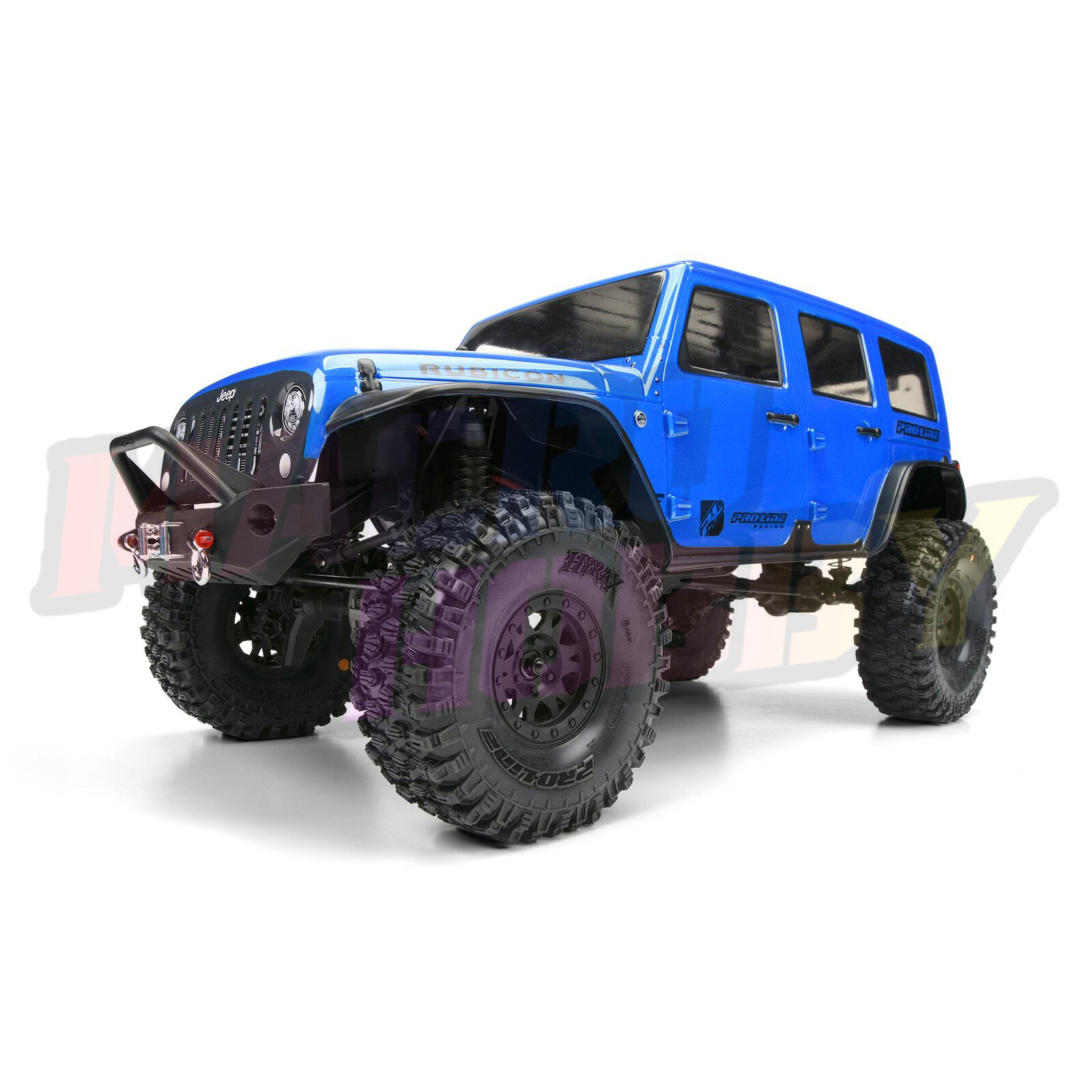 Product Details Key Features Connected tread on sidewall extends out for unmatched side-hilling performance High-grip stepped block and multiple sipe tread 3-piece wheels with 12mm hex Highly Detailed Sidewall for Scale Looks Made in the USA In The Box (2) Hyrax 1.9" Tires Mounted on Impulse Black Internal Bead-Loc 12mm Wheels Overview This is a pair of pre-mounted Hyrax 1.9" Tires. The future of 1.9" Tire Performance has arrived with Pro-Line's all-new Hyrax Tire! Designed from the ground up for maximum grip on the toughest terrain, the Hyrax tire is ready for anything your Scale Adventure might throw at you. The Hyrax features an aggressive and open tread pattern with each tread block containing multiple Sipes for incredible tread flex. The highly detailed connected tread on the sidewall of the Hyrax extends out for unmatched side-hilling performance. The Hyrax also features futuristic stepped tread blocks that create even more forward gripping edges that dig into slick rock like no other scale tire Pro-Line has produced to date! The Hyrax is made from Pro-Line's Legendary G8 material, so you know it provides the performance you can depend on. The Hyrax 1.9" tire comes conveniently pre-mounted to our Impulse Black Plastic 1.9" wheels that are Proudly Made in the USA! These all-new Impulse wheels are designed to not only look scale but to be super easy to use by only requiring 6 screws per wheel for mounting tires. The unique 3-piece plastic wheel design bolts together in the back and locks on to Pro-Line's incredible list of 1.9" Crawling Tires. The overall wheel width and wheel offset are the same as Pro-Line's line of 1.9" Aluminum Pro-Forge Wheels, so you know they will fit your truck and look good doing it. Be the first on your block to get the Hyrax 1.9" tires mounted to Pro-Line's new 1.9" Black Impulse wheels - Order yours today! Please note: All tires & wheels are sold in pairs, unless otherwise noted PRO1012810 | Hyrax 1.9" G8 Tires Mounted on Impulse Black Internal Bead-Loc 12mm Wheels (2) for Rock Crawler Front or Rear Features TIRE FEATURES Designed for Maximum Performance Highly Detailed Sidewall for Scale Looks Stepped Blocks & Multiple Sipes Create Unmatched Grip Tackle Tough Terrain in Scale Style Made in the Legendary G8 Material Made in the USA, since 1982 WHEEL FEATURES Popular Impulse Wheel Style Blacked out wheel color 12mm Hex 3-piece Plastic Wheel Design Molded in Bead-loc Ring and Lug Nuts for a Scale Look Wheel Made from High-Strength, Durable DuPont Nylon Fits 1:10 Scale Crawlers and Rock Racers Front or Rear