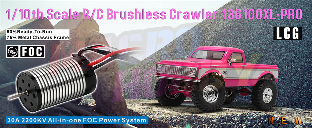 136100PRO "Shooter", an LCG-FOC brushless version and 1/10 high-performance crawler, is jointly developed by RGT and Hobbywing Technology. "Shooter" is RGT's first RTR vehicle equipped with brushless motor and low center of gravity structure. The new design is reflected in its excellent material usage,75% of vehicle chassis is assembled with CNC metal material parts, and the material consists of carbon, copper, 45# steel and aluminum. "Shooter" has distribution structure, motor-mounted in front, and the counterweight ratio is 6/4 at front and rear of chassis. "Shooter" is equipped with an all-in-one brushless FOC ESC motor, the ESC is 30 A and the brushless motor is 2200KV. The internal rotor magnetic field directional control drive mode has strong low-speed torque and super good linearity, and the motor runs smoothly and quietly, with excellent waterproof and dustproof performance, easily coping with various climates and site environments. "Shooter" comes in two colors, one is lively and cute pink body with pink metal axles, and the other is metal blue body with calm black metal axles. Chassis Structure: *. 2.5mm carbon chassis rails, 4.5mm diameter solid alloy links; *. CNC 6061 aluminum integral straight axle with caster angle; *. front steering shafts are made of steel #1144CVA; *. 46 degree super steering angle, resulting in smaller turning semi-diameter; *.servo mounted on axle, brass steering servo mount, aluminum wheel hex, 25T metal servo horn; Deceleration system: *.LCG structure, 6/4 counterweight ratio at front and rear of chassis, Reduction drive use metal gears with #45 steel reduction shaft; *.# steel central transmission shaft; *. CNC aluminum gearbox and CNC aluminum motor fixed plate 30A 2200KV all-in-one FOC Power System: *. The integrated design of ESC and motor greatly reduces the overall volume and weight, and makes the layout and wiring of carframe simper and more convenient. *.Low speed torque is strong, and low-speed linearity is excellent. The motor runs quiet and more smooth. *.The protection grade of the whole set of power is IP67, with excellent waterproof and dustproof performance, easily coping with various climates and site environments. *.Intelligent torque output and speed closed-loop control, fully experience the cruise control and steep slope slow descent function. *.Multi-stage drag brake force adjustment, the maximum drage braking force is about twice than ordinary brushless power, providing super parking capacity on ramp. *.Multiple protection functions: battery low voltage protection, overheat protection, throttle lost protection, lock-up protection. *It supports LED setting box to set ESC parameters, and has independent parameter setting interface which is integrated on electronic switch, making setting parameters more conveniene. Links: *4.5mm diameter solid aluminum 8-links; *. ball joint end uses reinforced nylon material in new formula, more resistant to friction and deformation. Suspension and wheels: *.The suspension system adopts CNC aluminum alloy twisted oil filled shock absorber, which brings more convenient damping adjustment; *. The tires are made of butyl rubber. 105mm diameter MT tires come with 1.9-inch retro electroplated wheel hub for better climbing grip and more durablility. Bodyshell: *. 1.2mm PC soft bodyshell; *. Enviromentally spray paint with transparent windows and cover-hidden bodyshell post *. Equipped with plastic decorative assessories such as LED headlights, rearview mirriors and door handles. Available in two colors (Pink, metallic blue) Electronic Parts: * Shooter will be in 90% RTR version to players, equipped with brushless FOC electric motor integrated system, 15kg metal gear servo, "FS" 6-channel 2.4 G remote controller, ESC could apply 2-3S Li-po. Package Included: 1X RC Car(do not have battery and charger) 1X Remote Controller 1X Manual